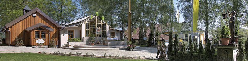 Innenansicht der Rosenkranzkapelle mit dem Glasschrein der Rosenkönigin. Im Jahr 1986 wurde die Rosenkranzkapelle an die Gnadenkapelle angebaut (Fertigstellung 1992). Rechts vorne befindet sich der Eingang zur Gnadenkapelle. Am 13. Mai 1998 wurde die Rosenkranzkapelle zusammen mit der Marienkirche geweiht.
